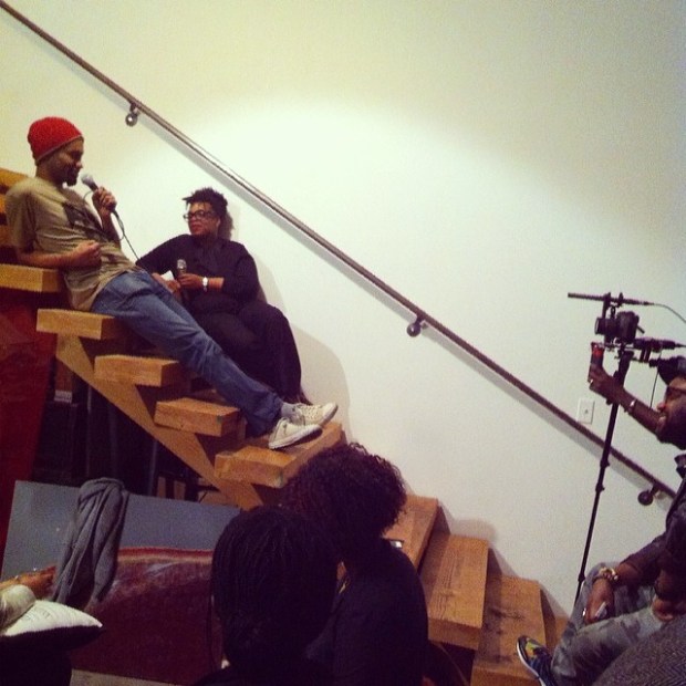 Filming Diggs Duke in conversation with Anthony Valadez in Downtown LA.